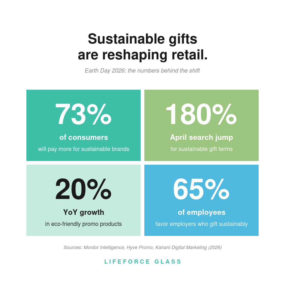 The numbers tell a clear story. The gift retailing market is projected to reach roughly $100 billion in 2026, and eco-friendly promotional products grew about 20 percent year over year in 2024, now representing close to 14 percent of U.S. promo industry revenue. More telling than the dollars are the people behind them: 73 percent of consumers say they are willing to pay a little more for products from brands committed to sustainability, and 81 percent believe companies should actively do their part to protect the environment.
